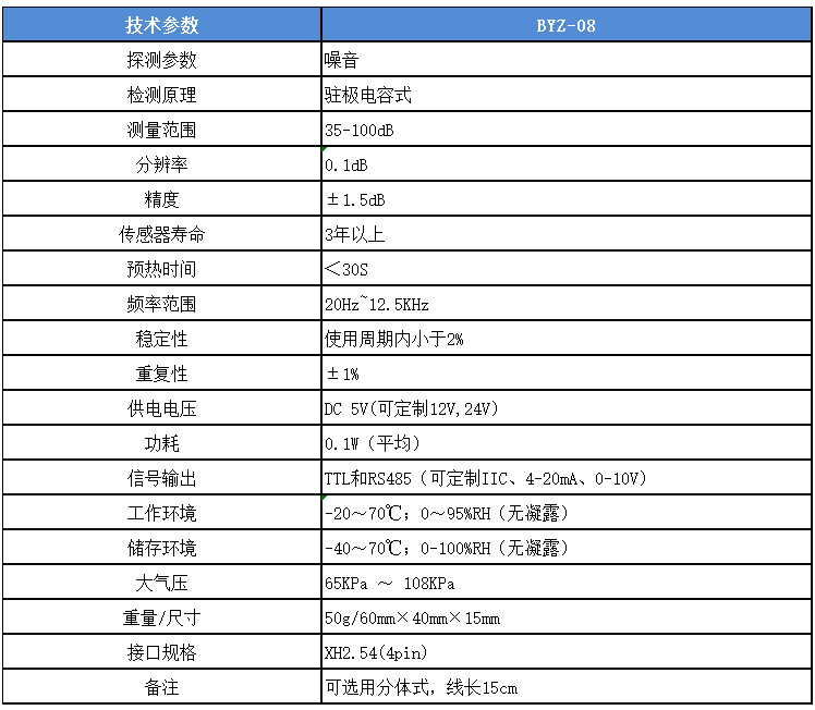 BYZ08ÔëÉù´«¸ÐÆ÷²ÉÓýø¿ÚÔªÆ÷¼þ±ê¶¨Êä³öÐźÅTTLºÍIIC£¬Õë¶Ô¼¯³ÉÉ̵ͳɱ¾Ó¦ÓÃÓû§Éè¼Æ£¬Ö±¶ÁʽÔëÒô¼ì²âÄ£¿é£¬ÊµÑé²Õͳһ±ê¶¨£¬Êý¾ÝÎȶ¨¿É¿¿¡£