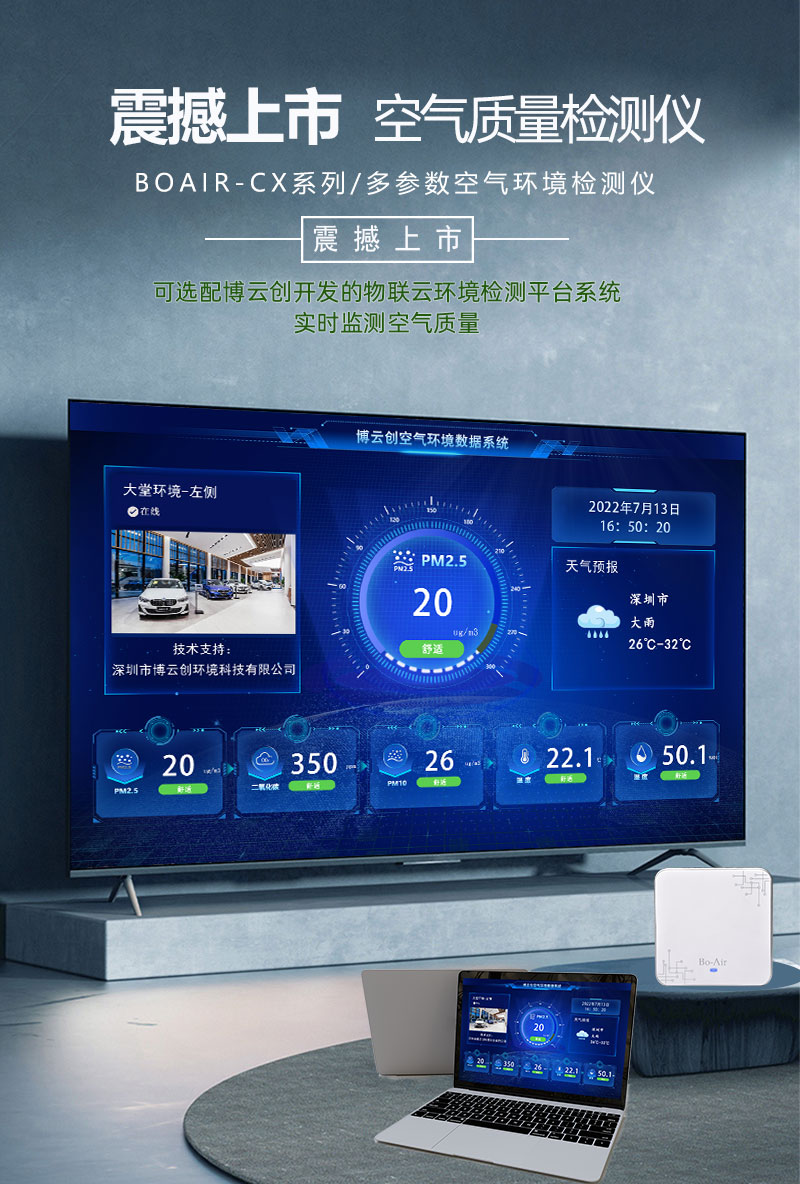 ´óÆÁϵͳ´óÆø»·¾³¼ì²âÒÇϵͳÊÇÓÉÉîÛÚÊÐPAµç×Ó»·¾³¿Æ¼¼ÓÐÏÞ¹«Ë¾Õë¶ÔÈÕǰÊÒÄÚ»·¾³¿ÕÆøÖÊÁ¿Ñз¢Éú²úµÄÒ»Ì×É豸£¬Ö÷ÒªÓÉBOAIRµÈϵÁмì²âÉ豸¡¢ÔÆÆ½Ì¨·þÎñÆ÷¡¢µçÊÓ»úÈý²¿·Ö×é³É¡£ÓÃÓÚ²âÁ¿ÊÒÄÚ»·¾³Î¶ȡ¢Êª¶È¡¢PM2.5¡¢PM10¡¢CO2¡¢¼×È©¡¢CO¡¢TVOCµÈŨ¶È£¬ÊµÊ±¼à²âÌṩÓÐЧµÄÊý¾ÝÏÔʾÖÁµçÊÓ»úÉÏ£¬´ËÉ豸Ö÷ÒªÊÊÓÃÓÚѧУ½ÌÊÒ¡¢ÖÇÄܼҾӡ¢°ì¹«Â¥¡¢¾Æµê´óÌᢷ¿µØ²úÕ¹Ìü¡¢±ðÊû¡¢Ò½Ôº¡¢KTV»áËù¡¢¸ß¶Ë²ÍÌüµÈ»·¾³¡£